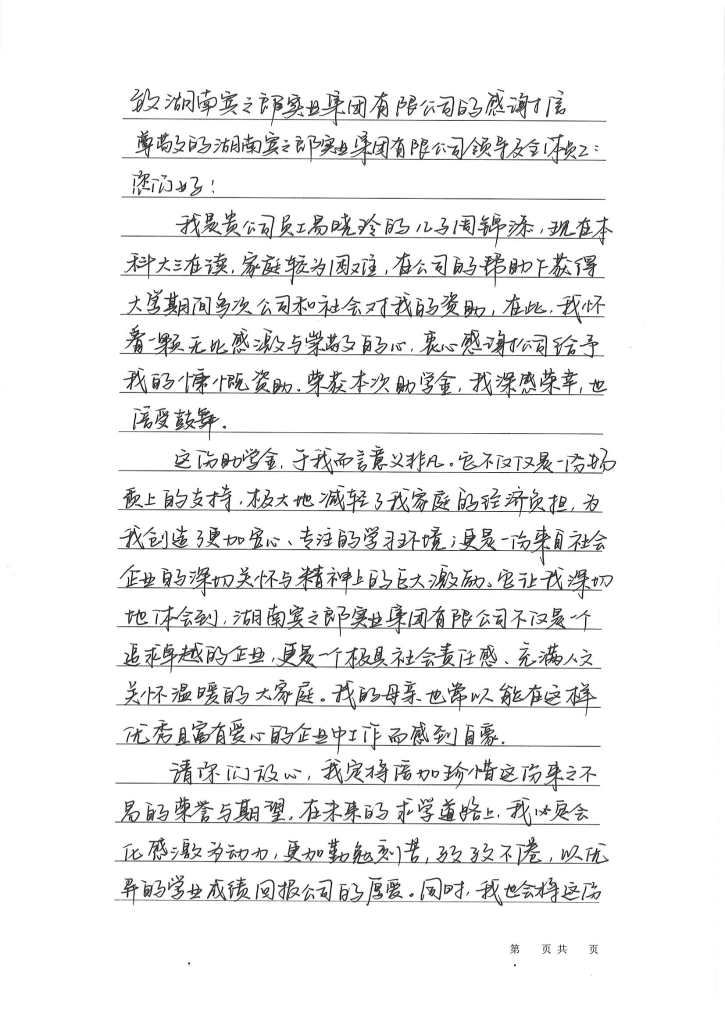 “賓之郎·助學(xué)勵志獎”是湖南賓之郎食品科技有限公司實(shí)現(xiàn)“企業(yè)發(fā)展、員工幸福、社會和諧”企業(yè)價值觀所設(shè)立的獎項。致力于解決優(yōu)秀學(xué)子因家庭貧困而不能完成學(xué)業(yè)的困難,幫助和鼓勵他(她)們奮發(fā)圖強(qiáng),通過學(xué)習(xí)改變命運(yùn),構(gòu)筑美麗人生。